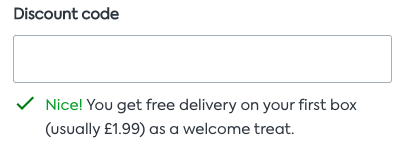 Of course we can't keep our codes forever, but we wish we could! As with all good things, our codes do come to an end. Previous codes have included 55% off, £25 off, £20 off your first box and £10 off your second box.